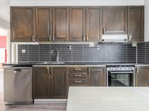 Jääkaappi, pakastekaappi, keraaminen liesi, liesituuletin, astianpesukone.