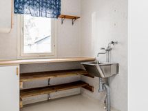 Sauna, sähkökiuas, kylpyhuone, erillinen wc, suihku, pesukoneliitäntä.