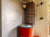 WC: Talousrakennuksen päädyssä on puucee.