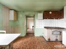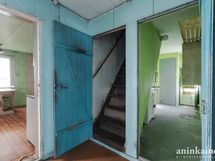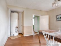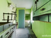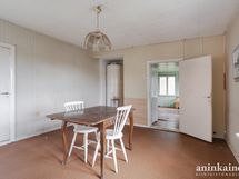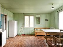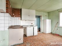 - Keittiössä on puuhella ja vanhat kaapistot. Seinät maalattu, lattia muovimattoa.