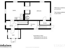- Omakotitalon keskikerros noin 58/68,5 m2, talousrakennus noin 125 m2, saunarakennus noin 24,5 m2. Rakennusten pinta-alat on mitattu paikan päällä laserilla ja laskettu nykyisin käytettävän SFS 5139 pinta-alastandardin mukaisesti. Maapohjan pinta-ala on mitattu Liedon kaupungin karttapalvelusta. Kauppahinta muodostuu myytävästä kokonaisuudesta. Kauppahinta ei perustu rakennusten eikä kiinteistön pinta-aloihin.