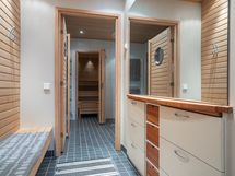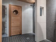 Talon alimmasta kerroksesta löytyy tiloja niin toimivaan arkeen kuin arjen juhlaksi muuttavia elementtejäkin. Takkahuoneessa tyylikäs antiikkitiilinen manttelitakka kutsuu tunnelmoimaan vaikka isommallakin porukalla. Elokuvahuone on näyttävä teatterimainen tila, jossa myös nerokkaat vierassängyt rakenteissa piilossa. Kylpyhuone kahdella suihkulla ja tyylikäs sauna valaistuine kiuluineen antavat ripauksen luksusta arjenkin kylpyhetkiin. Allashuone on yhä rakentamatta ja tarjoaakin valtavan määrän erilaisia toteutusvaihtoehtoja. Tähän voisi suunnitella vaikka monenlaista yritystoimintaa, esimerkiksi toimisto tai vastaanottotila on helposti tehtävissä. Tai sitten kotikäyttöön voi tilaan varustaa esimerkiksi tilavan kuntosalin tai joogastudion. Tai miksei voisi toteuttaa alkuperäisen suunnitelman uima-altaasta.