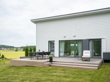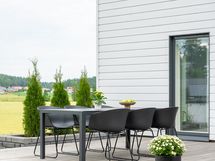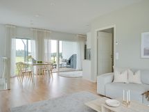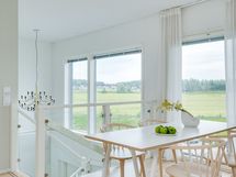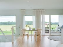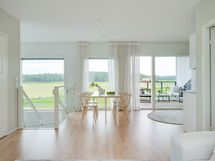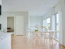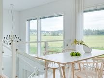 - Kaunis avokeittiö yhtenäistä tilaa olohuoneen ja ruokailutilan kanssa.