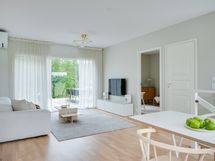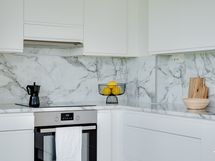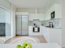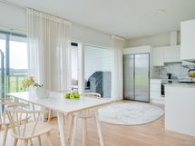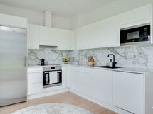 Varustelu: jääkaappi, pakastin, induktioliesi, uuni, liesituuletin, mikroaaltouuni, astianpesukone.