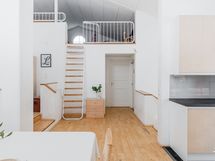 Kellarikerroksen autotallin yläkerrassa on avointa tilaa, jonne kulku tapahtuu ulkokautta. Erillisen autotallin yläkerrassa on myös avointa säilytystilaa. Sinne pääsee sekä ulko- että sisäpuolelta tikkaiden avulla.vaatehuone, ulkovarasto, muu erillinen varasto