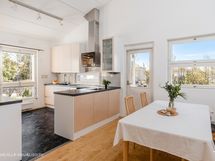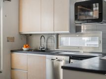 - Liesi: induktio, erillisuuni. Työtasot: laminaatti. Kylmäsäilytys: jääkaappi/pakastin. Varustus: mikroaaltouuni, astianpesukone, liesituuletin / hormi. Keittiö remontoitiin vuonna 2014. Asennettiin Puustellin keittiö, jossa uusittiin kaapistot sekä kodinkoneet. Keittiö on tilava ja siellä on runsaasti laskutilaa. Välitila on kaakeloitu ja katto on ruiskumaalattu.