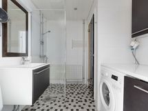 - Suihku, Pesukone, Pesukoneliitäntä, Tilaa pesukoneelle, Käsisuihku, Kaapisto, Allas, Suihkuseinä, WC-istuin, Peili