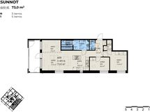 - Sauna, sähkökiuas, kylpyhuone, erillinen wc, suihku, suihkuseinä, allaskaappi, pesukoneliitäntä, lattialämmitys, kiinteät valaisimet, pyyhekoukut, wc-paperiteline. Kylpyhuoneessa varaus pyykinpesukoneen ja kuivausrummun liitännöille. Saunoissa lasiovi.
