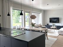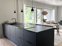 - Tilaa isolle ruokapöydälle, Paljon kaappitilaa, Paljon työskentelytilaa, Laminaattitasot, Astianpesukone, Integroidut koneet, Liesisaareke, Induktioliesi, Jääkaappi, Pakastin, Aamiaiskaappi