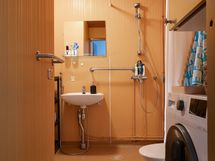 - Pesutilojen varusteet: WC-istuin, suihku, pesukoneliitäntä, lattialämmitys, peili, pesuallas, bidee-suihku ja kaapisto. Pesutilojen kuvaus: Kylpyhuone on alkuperäinen.