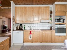 - Jääkaappi, pakastin, kylmiö (ei koneistusta), induktioliesi, liesituuletin, astianpesukone. Työtasot laminaattia