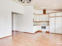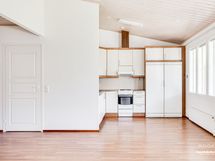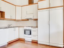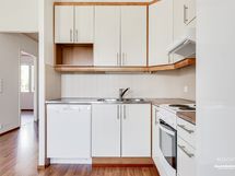 - Keittiön varusteet: Liesi, liesituuletin, astianpesukone ja jääkaappipakastin. Liesi: Keraaminen liesi. Työtason materiaali: Laminaatti. Astianpesukone ei toimi.