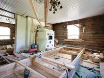 - Keittiön paikka tuvassa, ei vielä asennettu.