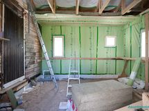 - Ikkunat uusittu 2011-2012, kolme ikkunaa uudelleen otettu käyttöön ja uudet ikkunat 2017-2018. Sisätiloista purettu pois pieni wc- ja pesutila. Seinäpinnat avattu hirrelle. Kokonaan alapohja purettu pois, alin hirsikerta uusittu, uusi antura (kapilaarimurskeet, salaojat, sadevesiviemärit), uusi kivijalka, uusi kuisti rakennettu osittain valmiiksi. Koolaus, villat (50mm villa), tuulensuojalevyt (25mm) ja ulkovuorilaudoitus uusittu, uusi sähköpääkeskus 2017-2018. Leivinuuni purettu, uusi valu tehty 2025. Yläkerran pintamateriaalit purettu 2025.