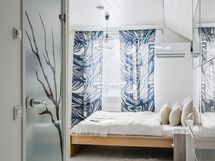 - Varusteet: sähkökiuas, lattialämmitys, LED-valaistus, ikkuna ulos. Tunnelmallinen sauna tarjoaa miellyttävät puitteet rentoutumiseen. Vaalea puupaneeli ja ikkuna tuovat tilaan valoa ja viihtyisyyttä, mikä tekee löylyhetkistä nautinnollisia. Seinämateriaali: paneeliseinä. Lattiamateriaali: laattalattia