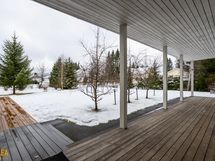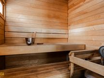 Lisäksi pihalla arkkitehtoninen ja tyylikäs pihasauna, joka on suunniteltu vaativalle nautiskelijalle. Reilun kokoinen ja huoliteltu terassi yhdistää saunan ja porealtaan yhdeksi selkeäksi alueeksi.