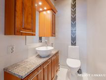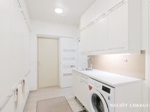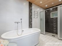 Pesutilojen moderni kylpyhuone suihkuseinineen ja rentouttavalla kylpyammeella kruunaa arjen luksuksen. Erillisiä wc-tiloja on kaksi, joista toisessa on ikkuna luomassa luonnonvaloa ja avaruutta. Tilava kodinhoitohuone ja hyvät säilytystilat helpottavat arjen askareita.