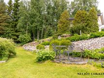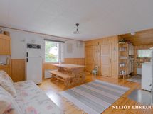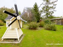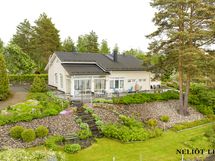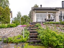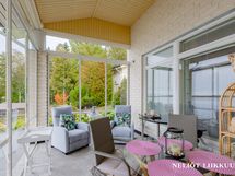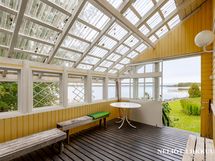 Päärakennuksen yhteydessä oleva lasitettu terassi tarjoaa viihtyisän tilan oleskeluun ja ruokailuun pitkälle syksyyn. Täällä voit nauttia kesäilloista säällä kuin säällä. Säilytystilaa löytyy runsaasti niin vaatehuoneesta kuin ulkovarastostakin.