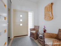 Tämä valoisa ja viihtyisä koti on suunniteltu palvelemaan vaativampaakin makua. Sisääntuloa vastassa on tyylikäs kokonaisuus, jossa tilat sulautuvat saumattomasti yhteen.