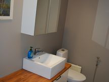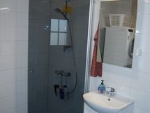 - Suihku, Suihkuseinä, Pesukonevalmius, Peilikaappi, Laattalattia, Laattaseinä, Avattava ikkuna, Lattialämmitys