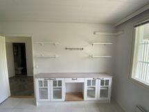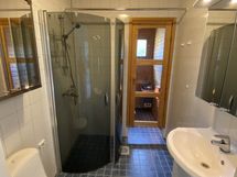 - Suihkukaappi, Pesukonevalmius, Peilikaappi, Allaskaappi, Laattalattia, Laattaseinä, Lattialämmitys