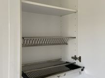 - Tilaa isolle ruokapöydälle, Suuri tiskipöytä, Lasikaapit, Paljon kaappitilaa, Paljon työskentelytilaa, Puutasot, Teräskalusteet, Astianpesukone, Pesukoneliitos, Integroidut koneet, Induktioliesi, Liesikupu, Jenkkikaappi