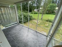 - Lasitettu parveke, avautuvilla laseilla. Laatoitettu.
