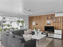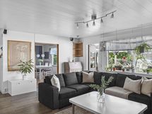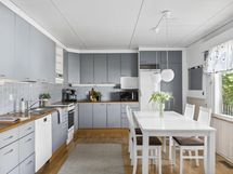 - Jääkaappi, jääkaappipakastin, keraaminen liesi, astianpesukone, kaapistot, kiinteät valaisimet, pöytätasojen materiaali laminaatti.