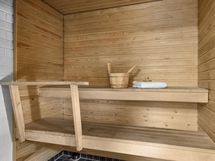 - Sauna, puukiuas, kylpyhuone, erillinen wc, suihku, peilikaappi, allaskaappi, pesukoneliitäntä pesuh, lattialämmitys pesuh, sauna (sähköllä), kiinteät valaisimet.