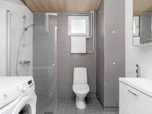 - Kylpyhuone, suihku, suihkuseinä, peilikaappi, pesukoneliitäntä, lattialämmitys. Kylpyhuoneessa ikkuna