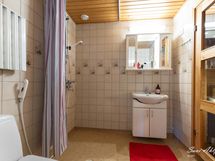 - Pesutilojen kuvaus: Alkuperäinen kylpyhuone, tekninen käyttöikä on saavutettu, kopolaattoja, pesukoneliitäntä, peilikaapistoja, wc.