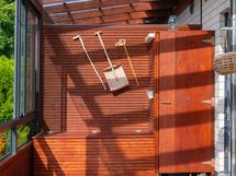 - Katettu terassi 40 m2. Erillinen häkkivarasto.