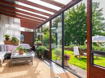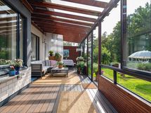- Ikkunoita itään, Ikkunoita länteen, Olohuone ja terassi ilta-aurinkoon