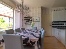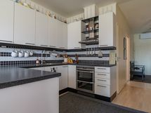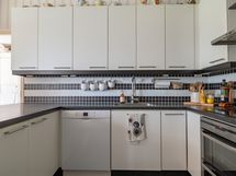 - Tilaa isolle ruokapöydälle, Paljon kaappitilaa, Suuri tiskipöytä, Laminaattitasot, Astianpesukone, Liesituuletin, Liesi tai uuni erikseen, Induktioliesi. 2 kiertoilmauunia.