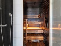 - Suihku, Allaskaappi, Rättipatteri, Laattalattia, Laattaseinä, Erillinen WC, Lattialämmitys