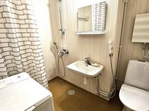 - Pesutilojen varusteet: WC-istuin, suihku, pesukoneliitäntä ja peili.