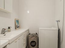- Pesutilojen varusteet: Suihku ja lattialämmitys. Erillisten WC:n lukumäärä: 1. Erillisen WC:n varusteet: WC-istuin, pesukoneliitäntä, peilikaappi, allaskaappi, pesuallas ja bidee-suihku.