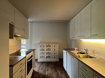 - Paljon kaappitilaa, Suuri tiskipöytä, Astianpesukone, Sähköliesi, Liesituuletin, Jää-pakastinkaappi