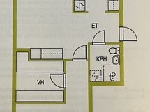 - Rappukäytävän ulko-oven edessä on liuska, jota pitkin mahdollista kulkea esimerkiksi rollaattorilla.