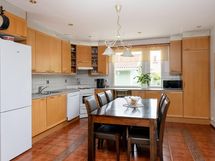 - Jääkaappi/pakastin, sähköliesi, liesituuletin hormiin (huippuimuri katolla), astianpesukone, kaapistot