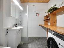 - Suihku, Pesukoneliitäntä, Mukavuuslattialämmitys, Tilaa pesukoneelle, Käsisuihku, Allas, Suihkuseinä, WC-istuin, Peilikaappi