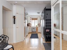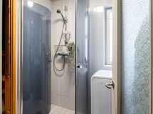 - Pesutilojen varusteet: Suihku, suihkuseinä, pesukoneliitäntä, lattialämmitys (sähköinen) ja pyyhkeenkuivausteline. Pesutilojen kuvaus: saunan yhteydessä, ikkuna. Erillisten WC:n lukumäärä: 1. Erillisen WC:n varusteet: Lattiakaivo. Erillisen WC:n kuvaus: wc-istuin, bidee-suihku, allas, peilikaappi, kaappi.