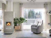 verhotangot, sälekaihtimet/rullaverhot. Sähköliittymä, Vesiliittymä. Varaava takka