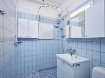 - Suihku, peilikaappi, allaskaappi, pesukoneliitäntä, seinäkaapit, wc-istuin