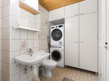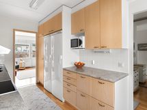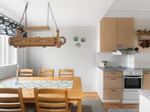 - Keittiön varusteet: Jääkaappipakastin, liesi ja astianpesukone. Liesi: Keraaminen liesi. Työtason materiaali: Laminaatti.