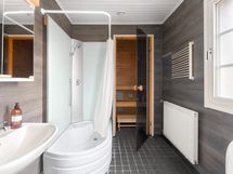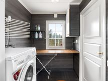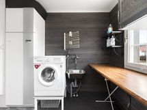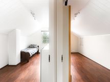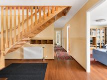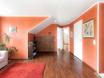Yläkerrasta löytyy mm. toinen olohuone ja reilusti säilytystilaa talon kaikkien lappeiden alla. Alakerrassa oleskelutilat, keittiö ja käytännöllinen kodinhoitohuone, josta kulku suoraan ulos.