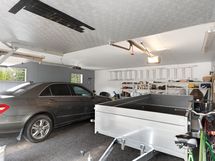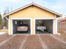 Tontilla sijaitsee lisäksi kahden auton puolilämmin talli ja 18 m2 varasto. Autotallin ovet toimivat kaukosäätimillä. Sähköauton 11 kW latauspaikkoja löytyy kaksi – toinen autotallista ja toinen pihalta.