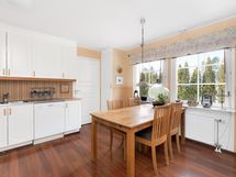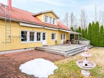 Tämä vuonna 2005 valmistunut puutalo sijaitsee omalla 1318 m2 tontilla, vain 700 metrin päässä päiväkodista ja koulusta. Talossa on kuusi makuuhuonetta, kolme alakerrassa ja kolme yläkerrassa - täällä on riittävästi tilaa siis isommallekin perheelle.