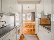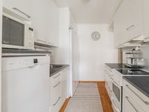- Keittiön varusteet: Erillinen pakastin, jääkaappi, liesi, astianpesukone ja liesituuletin. Liesi: Keraaminen liesi. Työtason materiaali: Laminaatti. Keittiö uusitu 2016 (astianpesukone ja liesi ovat vanhempia).