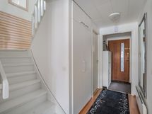 - Vaatehuone, kylmä ulkovarasto ja kaapistot. Lisätietoja säilytystiloista: Alakerran makuuhuoneen yhteydessä vaatehuone, yläkerran makuuhuoneessa peililiukuovikaapisto, yläkerran rapputasanteella myös kaapisto, yläkerran iso vaatehuone